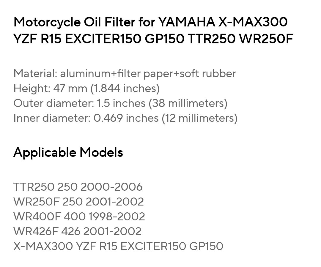 Yamaha Motorcycle Oil Filter for Yamaha X-MAX300 WR250X WR250F 450F 250R YZ250 YFZ450 YZ250F YZF R125 125 YZ250 250F