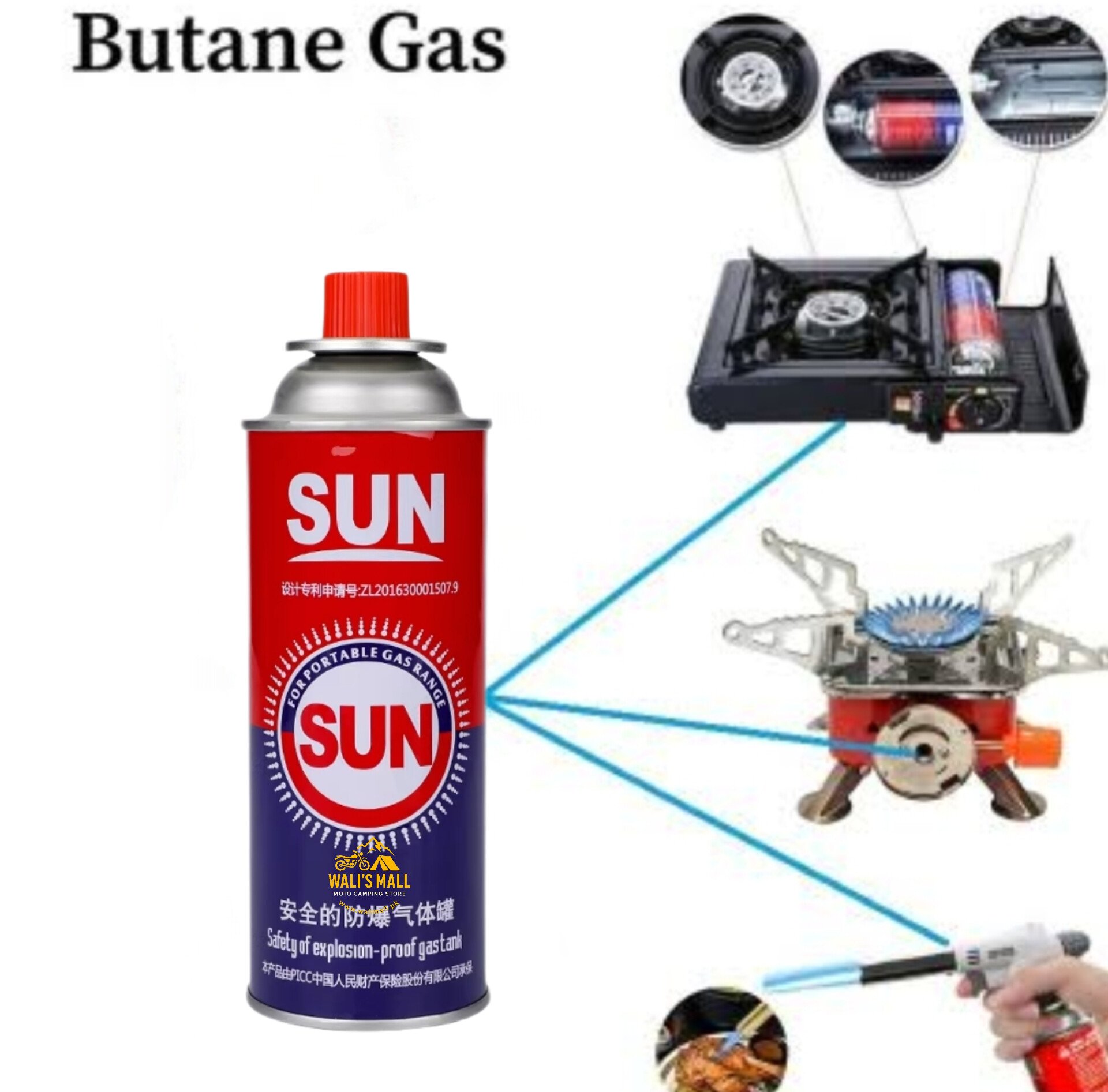 Butane Gas Can 220G Sun Gas For Camping Stoves Pack of 4 #Wm #Walimall.pk